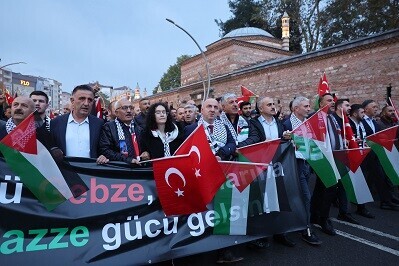 Sloganlar eşliğinde gerçekleşen yürüyüşte Gebze’den Gazze halkına destek mesajları gönderilirken yürüyüşün ardından konuşan Gebze Belediyeler Birliği Dönem Başkanı ve Darıca Belediye Başkanı Muzaffer Bıyık, “Bugün burada toplanmamızın tek bir nedeni var, zulme karşı durmak, mazluma sahip çıkmak, insanlığın onurunu korumak. Gazze’de aylardır süren vahşet, artık bir savaş değil; insanlığın vicdanını kanatan bir soykırımdır. Buradan hep birlikte Gazze’de masum sivillere yönelik insanlık dışı saldırılarıyla soykırım suçu işleyen İsrail’i şiddetle kınıyoruz. Her gün çocuklar ölüyor, her gün masum insanlar bombaların altında can veriyor. Ama biz biliyoruz ki; bir çocuğun gözyaşı bile, bütün insanlığın vicdanını titretmelidir. Kardeşlerim, biz susmayacağız, biz unutmayacağız, çünkü biz inanıyoruz ki; zulme sessiz kalan, zulmün ortağı olur. İşte bu yüzden bugün, Gebze’siyle, Darıca’sıyla, Çayırova’sıyla, Dilovası’yla tek yürek, tek ses, tek vicdan olduk. Bu birliktelik, sadece bir bölgenin değil; bir ümmetin vicdanının haykırışıdır. Rabbim, mazlum Gazze halkına güç ve sabır versin. Gazze’ye huzur, Kudüs’e özgürlük, insanlığa da merhamet nasip etsin. Ve bu aziz milleti, her daim mazlumun yanında, zalimin karşısında kılsın. Bizim kalbimiz Gazze’de atıyor. Burada Gazze için yürüyen her adım vicdanın sesidir. Unutmayalım kardeşlerim Gazze düşerse insanlık düşer. Ama biz var oldukça, biz birlik oldukça Gazze direnecek, Gazze kazanacak. Rabbim Gazze’yi, Filistin’i ve bu yürekli milleti korusun" dedi.