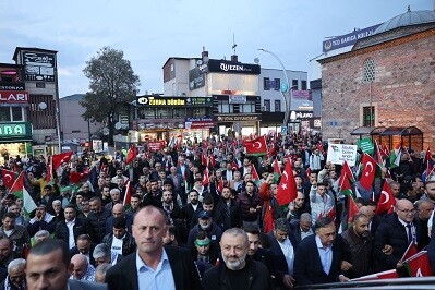 İsrail’in Gazze’deki soykırım ve işgalinin ikinci yılında binlerce kişi Gebze Belediyeler Birliği’nin öncülüğünde düzenlenen etkinlikte yürüyerek protesto etti.